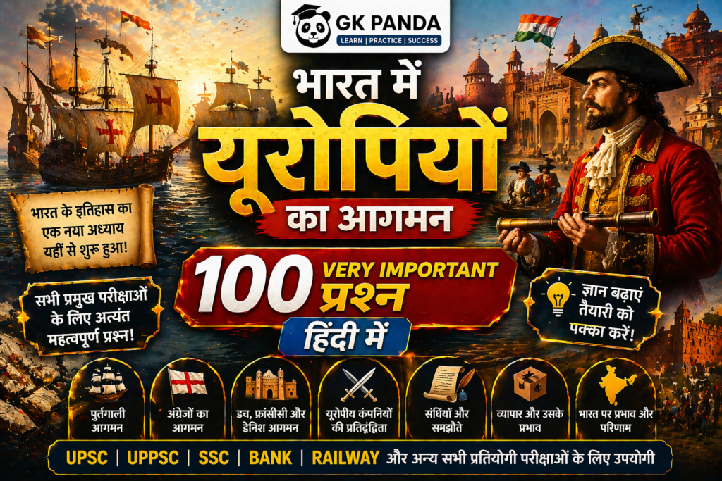 General Knowledge In Hindi, History GKभारत में यूरोपियों का आगमन: 100 Very Imporant Questions (MCQs) root / Load More Questions