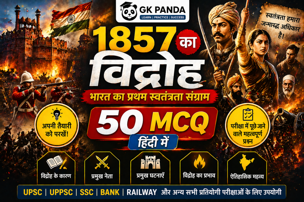 General Knowledge In Hindi, History GK1857 का विद्रोह: 50 Most Important Questions (MCQs) root / Load More Questions