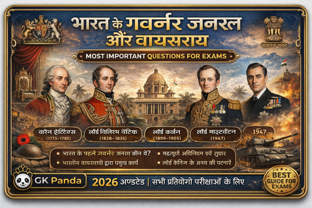 General Knowledge In Hindi, History GKभारत के गवर्नर जनरल और वायसराय: 50 महत्वपूर्ण प्रश्नोत्तर (MCQs) root / Load More Questions