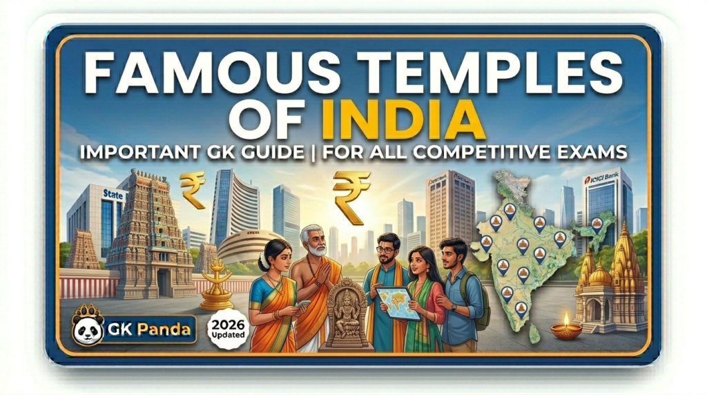 भारत को ‘मंदिरों का देश’ कहा जाता है। यहाँ की प्राचीन सभ्यता और संस्कृति की झलक यहाँ के भव्य मंदिरों में देखने को मिलती है। प्रतियोगी परीक्षाओं (SSC, UPSC, Railway, State PSC) में अक्सर इन मंदिरों की Architecture, निर्माणकर्ता और उनके स्थान से संबंधित प्रश्न पूछे जाते हैं। इस Article में हम India’s Famous Temples के बारे में जानेंगे। काशी विश्वनाथ मंदिर (वाराणसी, UP): यह भगवान शिव के 12 ज्योतिर्लिंगों में से एक है। इसका वर्तमान स्वरूप अहिल्याबाई होलकर ने बनवाया था। केदारनाथ और बद्रीनाथ (उत्तराखंड): ये ‘चार धाम’ यात्रा के मुख्य केंद्र हैं। केदारनाथ शिव को और बद्रीनाथ विष्णु को समर्पित है। स्वर्ण मंदिर (अमृतसर, पंजाब): इसे ‘हरमंदिर साहिब’ भी कहा जाता है। इसकी नींव सूफी संत मियां मीर ने रखी थी। खजुराहो के मंदिर (मध्य प्रदेश): इनका निर्माण चंदेल शासकों ने करवाया था। यह अपनी कामुक मूर्तिकला के लिए विश्व प्रसिद्ध हैं। सोमनाथ मंदिर (गुजरात): यह भारत का प्रथम ज्योतिर्लिंग माना जाता है। इस पर महमूद गजनवी ने कई बार आक्रमण किया था। दिलवाड़ा जैन मंदिर (राजस्थान): माउंट आबू में स्थित यह मंदिर संगमरमर की शानदार नक्काशी के लिए जाना जाता है। जैन लोगो का इतिहाश से जुड़े सवाल भी आपको इस वेबसाइट पर मिलेंगे मीनाक्षी अम्मन मंदिर (मदुरै, तमिलनाडु): यह मंदिर अपने विशाल ‘गोपुरम’ (प्रवेश द्वार) के लिए प्रसिद्ध है। बृहदेश्वर मंदिर (तंजावुर, तमिलनाडु): इसे ‘राजराजेश्वर’ मंदिर भी कहते हैं। इसे चोल राजा राजराज प्रथम ने बनवाया था। तिरुपति बालाजी (आंध्र प्रदेश): यह दुनिया के सबसे अमीर मंदिरों में से एक है, जो भगवान वेंकटेश्वर को समर्पित है। विरुपक्ष मंदिर (हम्पी, कर्नाटक): यह विजयनगर साम्राज्य की कला का उत्कृष्ट नमूना है। कोणार्क सूर्य मंदिर (ओड़िशा): इसे ‘ब्लैक पगोडा’ कहा जाता है। इसका आकार एक विशाल रथ जैसा है जिसमें 24 पहिये लगे हैं। जगन्नाथ मंदिर (पुरी, ओड़िशा): यहाँ की ‘रथ यात्रा’ पूरी दुनिया में मशहूर है। कामाख्या देवी मंदिर (असम): यह तांत्रिक पूजा का मुख्य केंद्र है और गुवाहाटी की नीलांचल पहाड़ियों पर स्थित है। Load More Questions